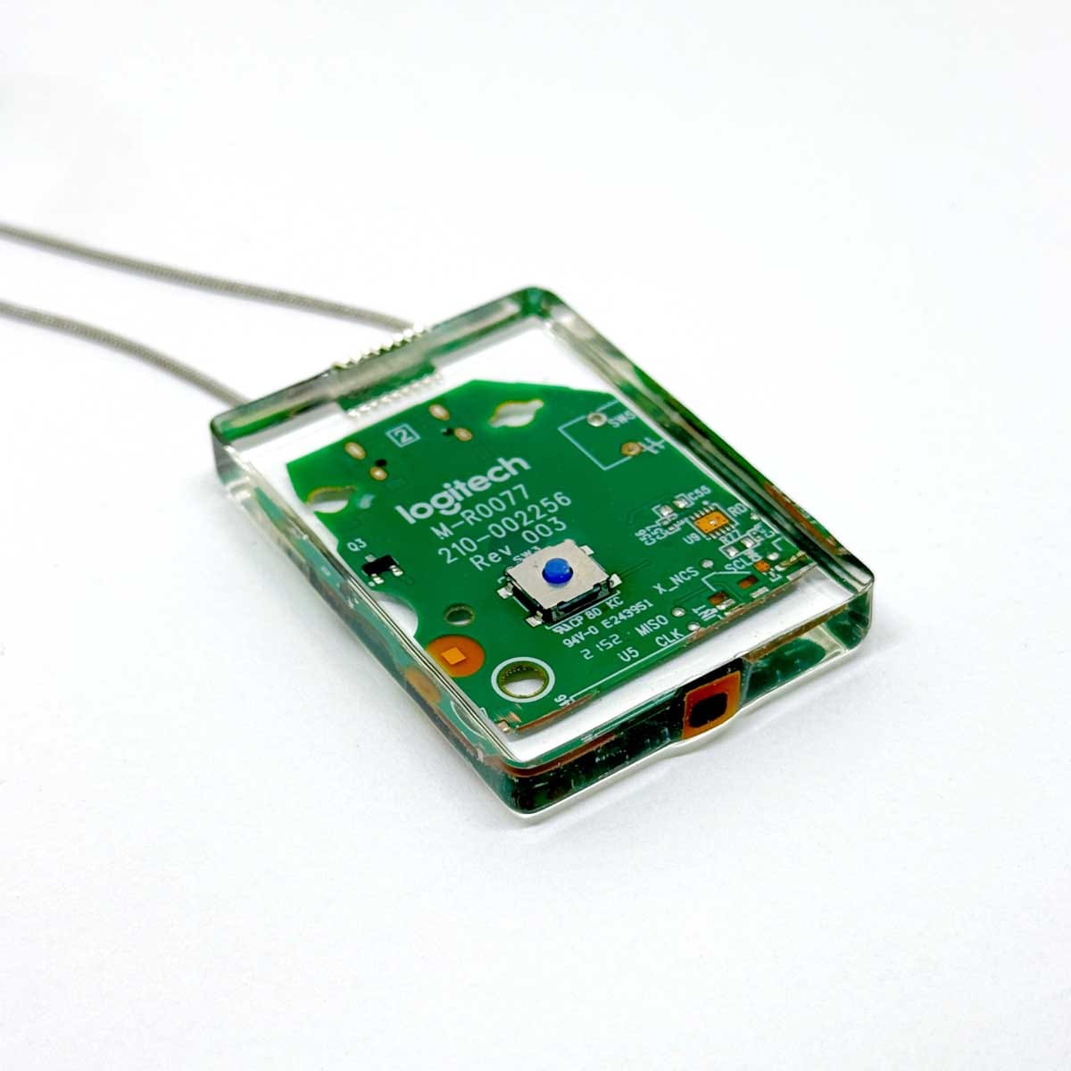 Tämä digikoru on syntynyt Logitech MX Master -hiiren sydämestä eli sen pääpiirilevystä. Se ohjasi aikoinaan tuhansia klikkauksia, liikkeitä ja oivalluksia. Nyt se elää uutta elämää ihmisen rinnalla, ei enää työkaluna, vaan tarinankertojana.