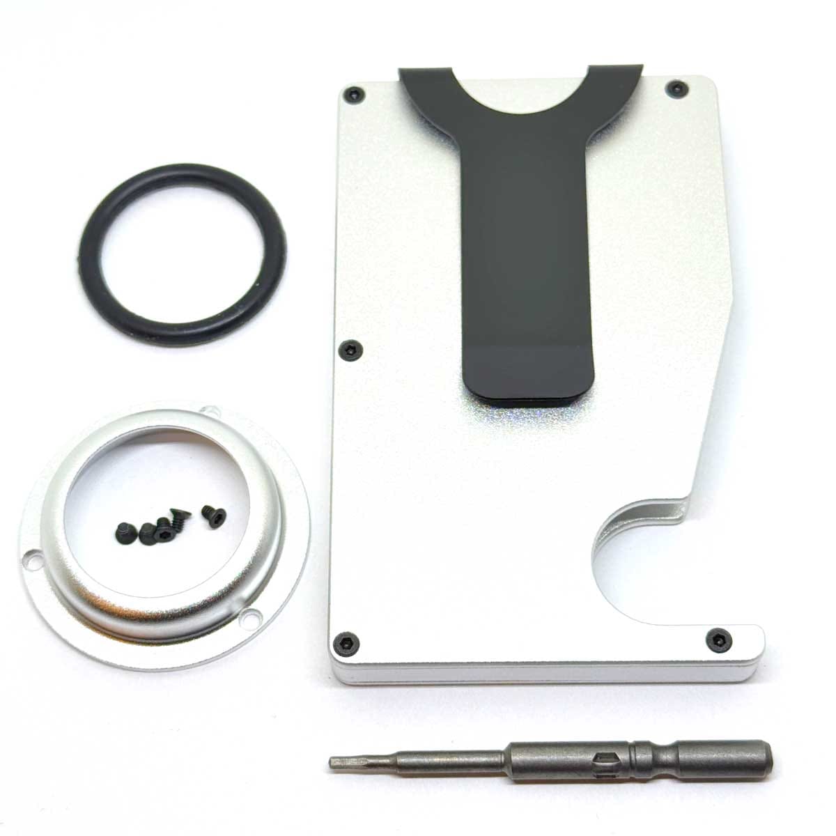Lompakko on kevyt (80 g) ja kestävä, koska se on valmistettu korkealaatuisesta lentoalumiiniseoksesta. Lompakko itsessään on 10 millimetriä paksu. Klipsi lisää paksuuden 14 millimetriin ja AirTag-kiinnike 20 millimetriin, jos sitä haluaa käyttää. Lompakko on 59 millimetriä leveä ja 95 millimetriä pitkä.